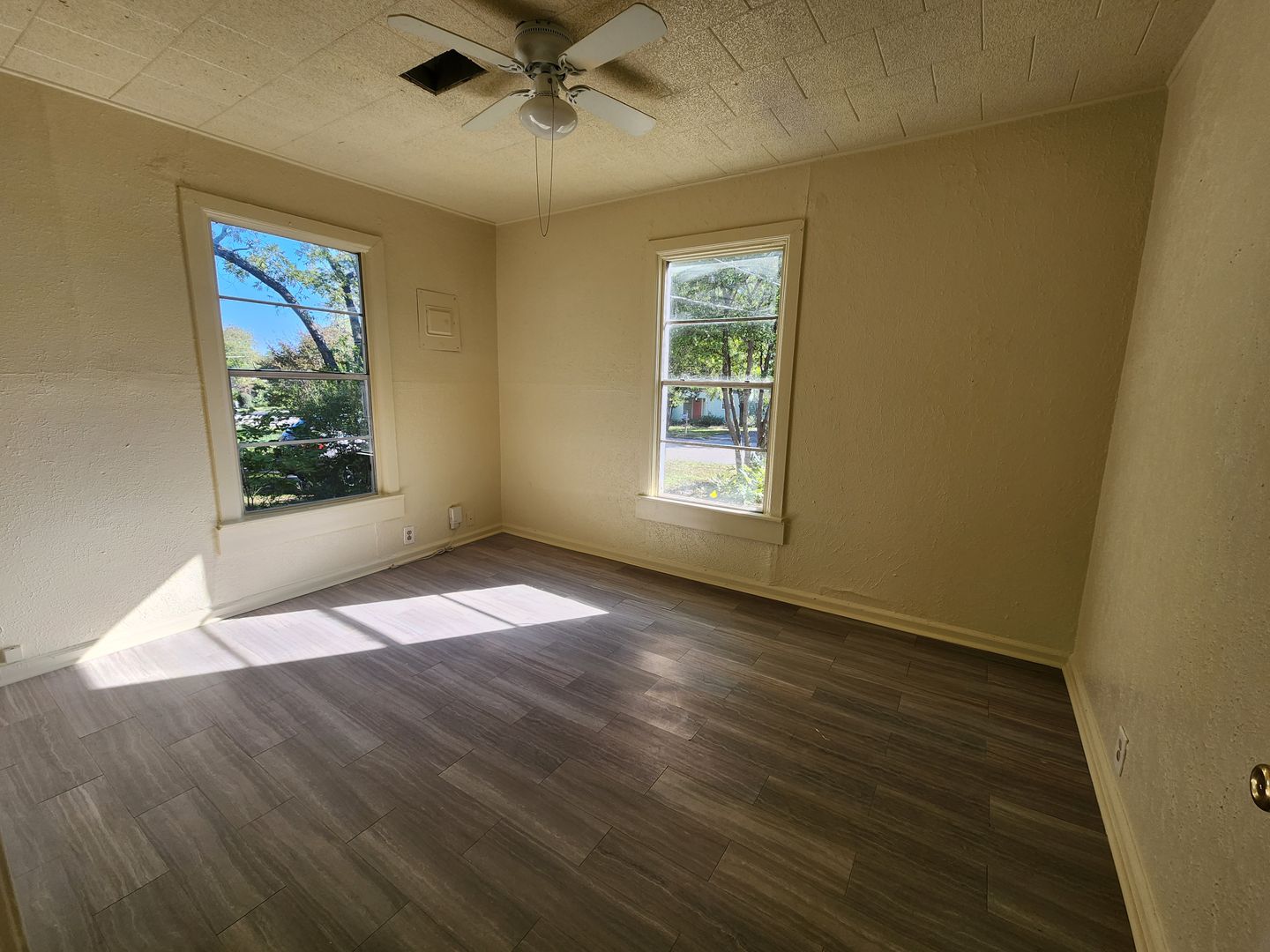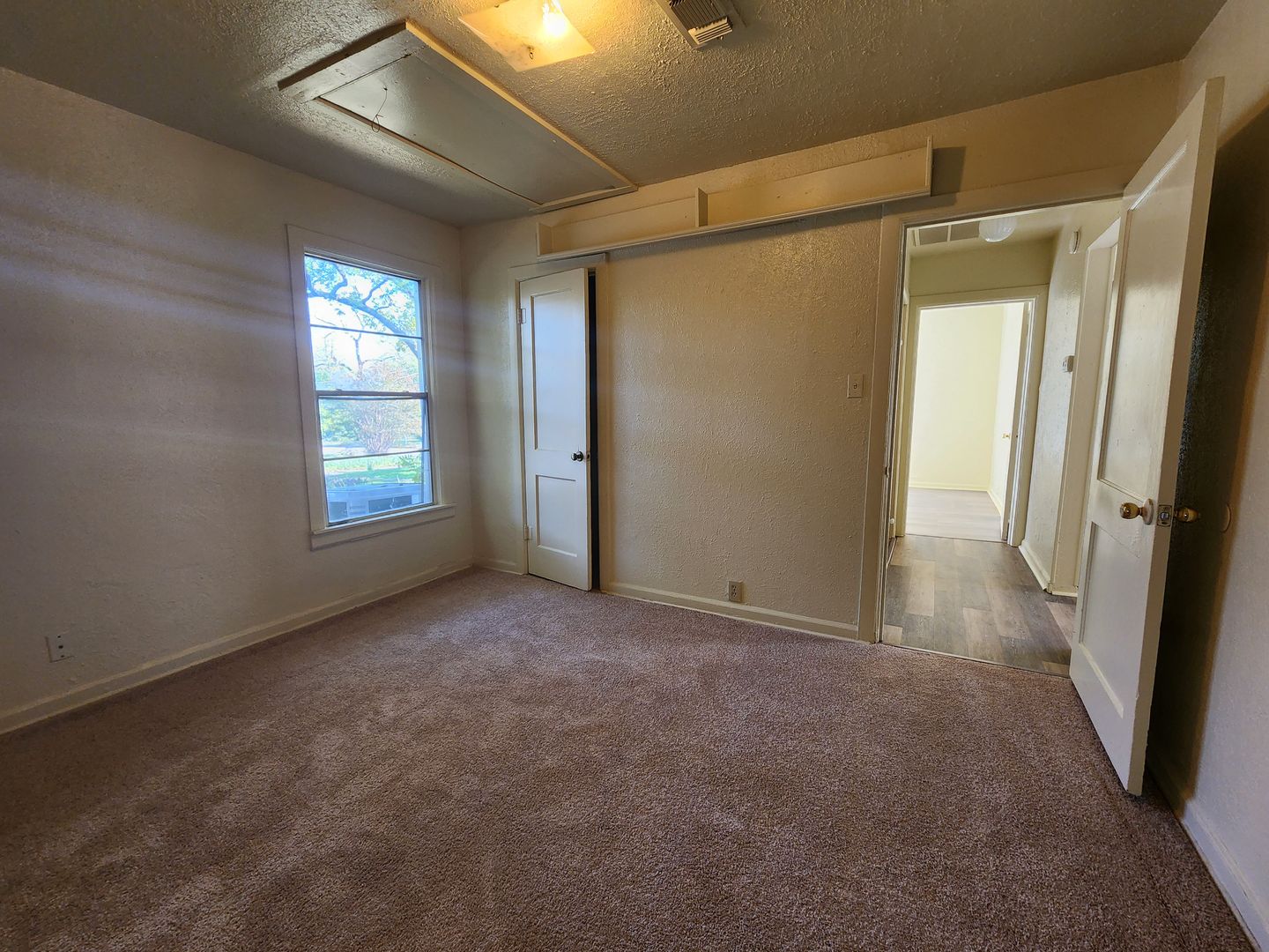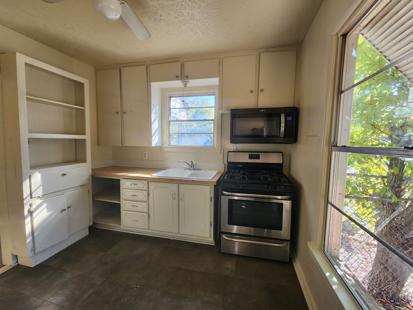 Cute 3 Bedroom 2 bath Home Close to UNT and I35. Corner Lot. Central heat and Air. Gas available for faster heating and more energy savings. Big rooms. Primary bedroom has a door to a secondary room to make it easy to check on each other, use as an office or nursery or you can just lock it off. Kitchen has nice stainless steel Range. Refrigerator, microwave, washer and dryer are included. Nice back yard. Shares water and trash bill with ADU behind the house. Easy to qualify. Pets ok. Students ok. Ready for move in. Stock photos. Home is occupied. Available Aug 1, 2026.