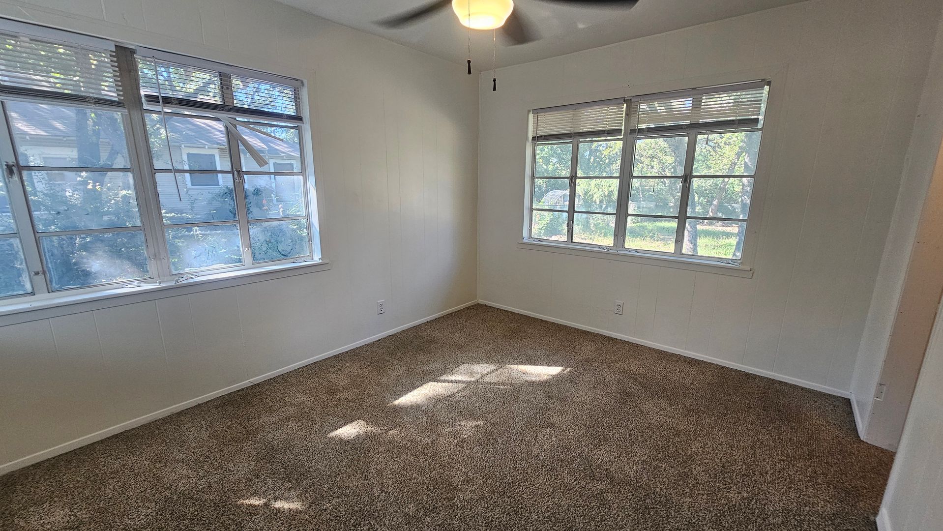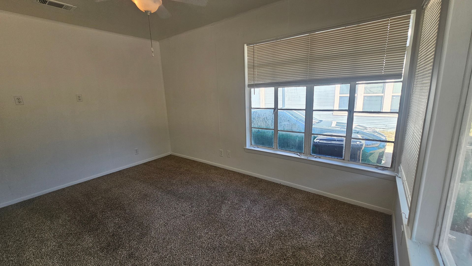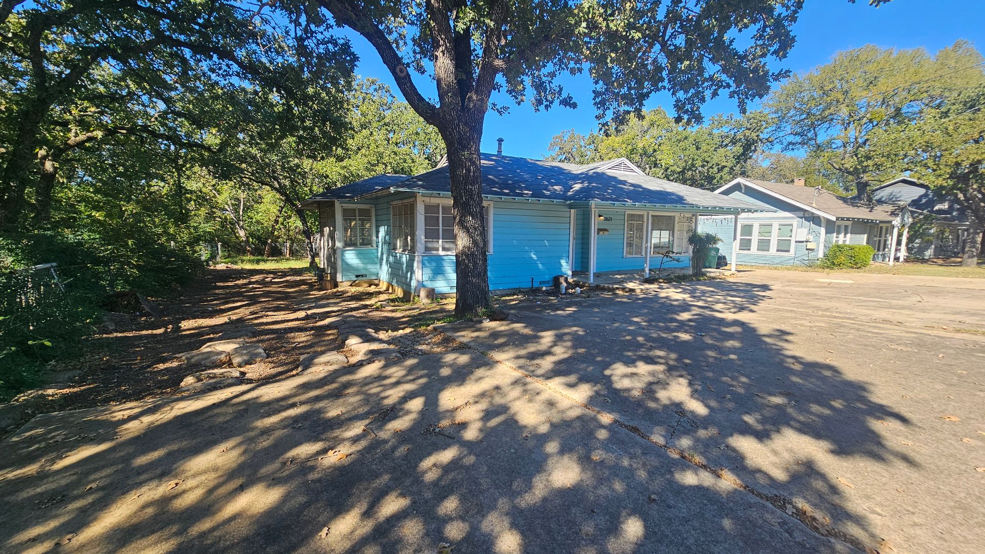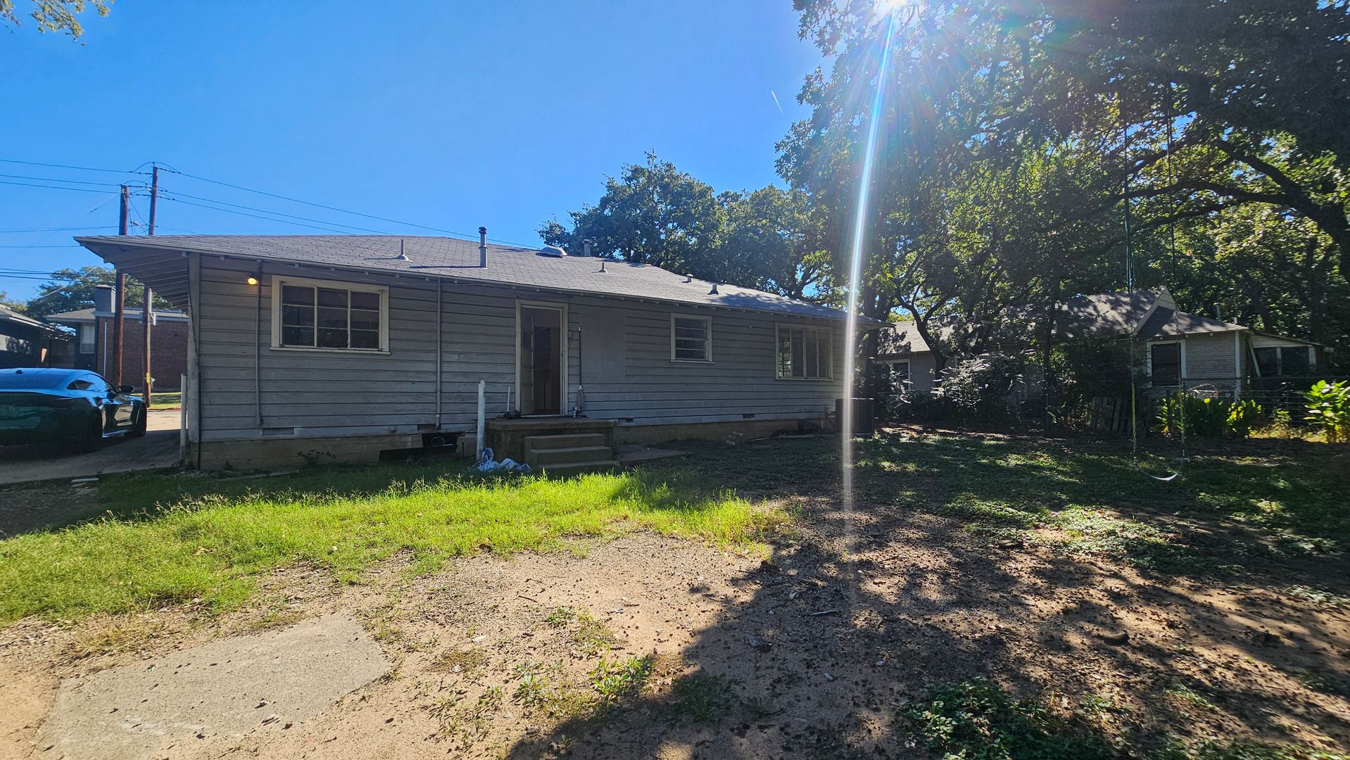 3 bedroom home with circle drive in front. lots of parking. Giant windows. Huge back yard. Underground Tornado Shelter. Central Heat and Air. Close to UNT and TWU. Students ok, pets ok. No Sec 8 nor housing voucher. Move in Now. Stock Photos.