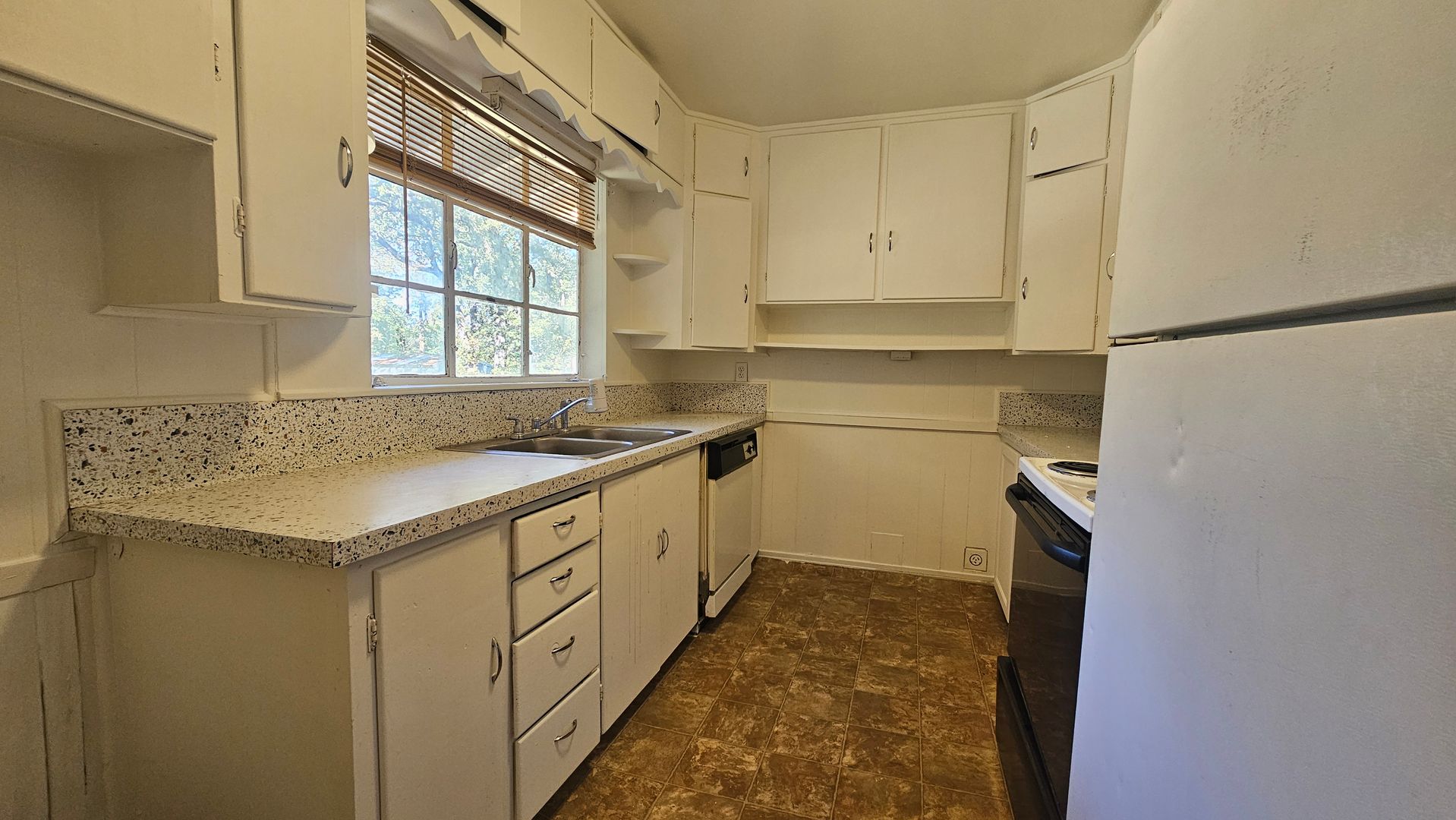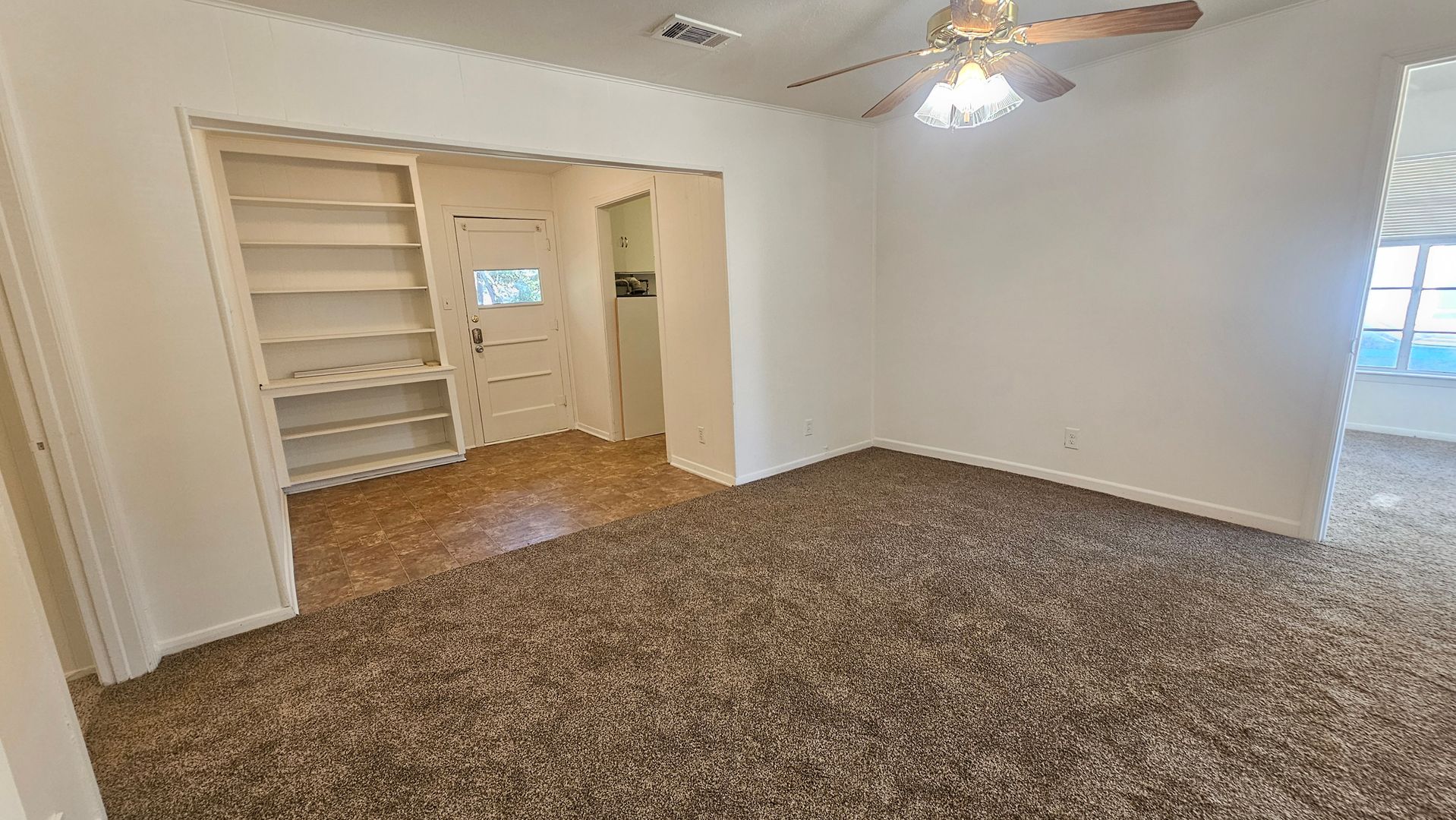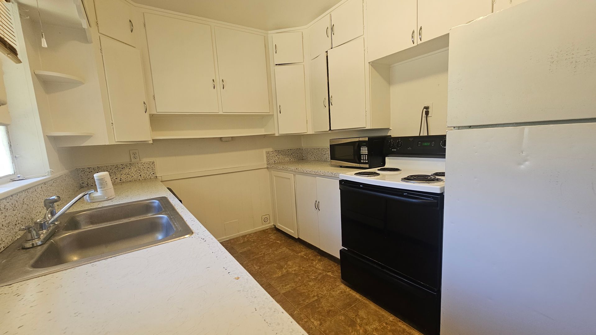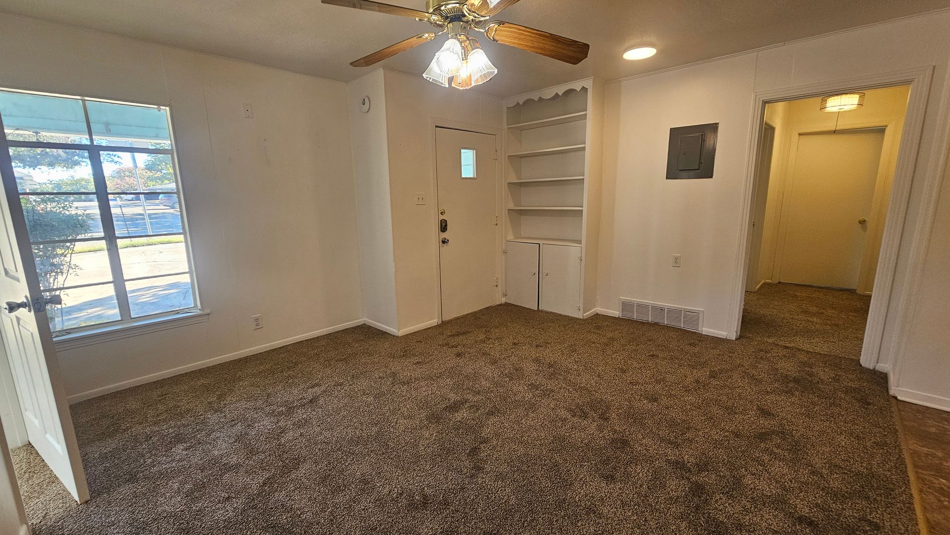 3 bedroom home with circle drive in front. lots of parking. Giant windows. Huge back yard. Underground Tornado Shelter. Central Heat and Air. Close to UNT and TWU. Students ok, pets ok. No Sec 8 nor housing voucher. Move in Now. Stock Photos.