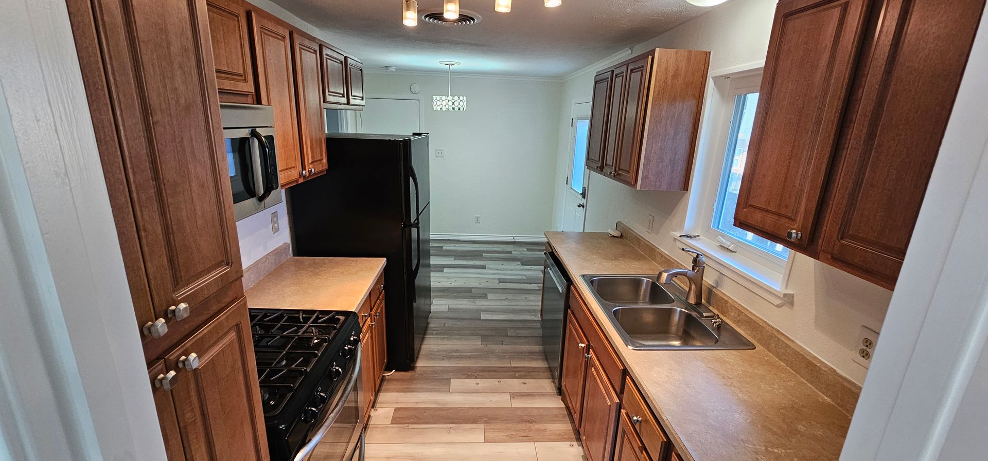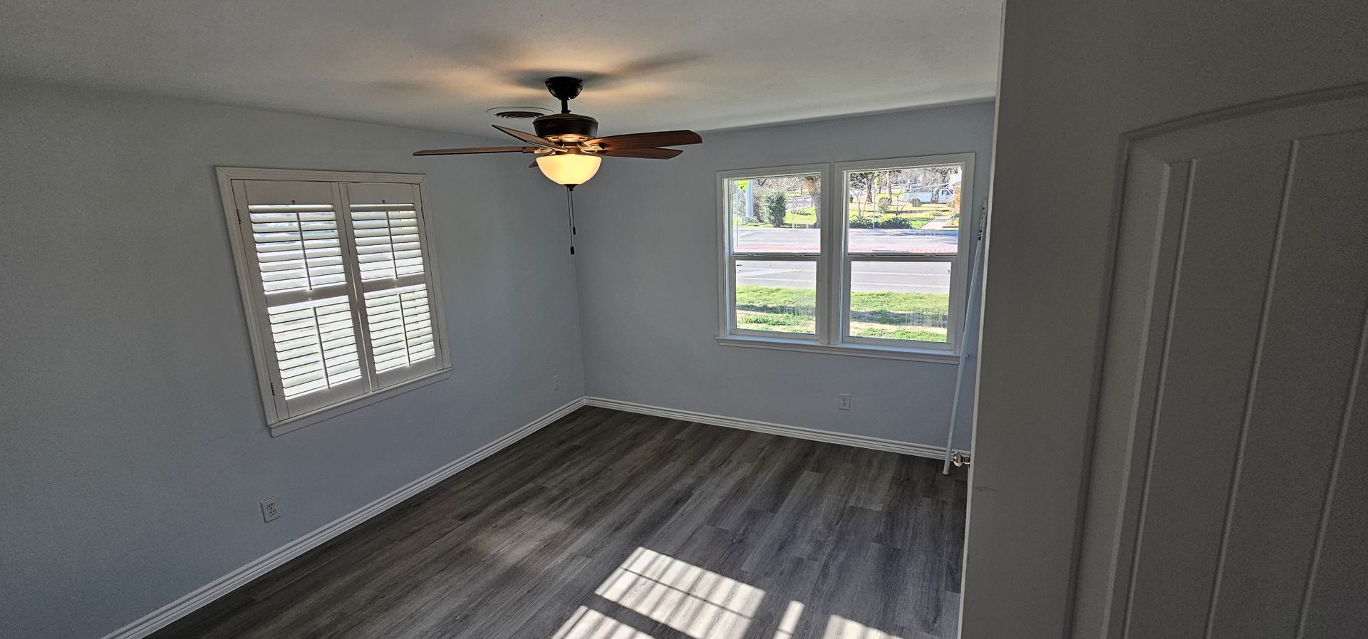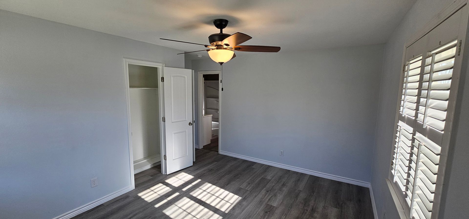 Renovated 4 Bedroom Home with stainless steel appliances, gas range, nice Kitchen Cabinets, counters, & paint. Luxury Vinyl Plank flooring throughout. Cute light fixtures. Recent Vinyl windows for quiet & energy efficiency. Plantation shutters for privacy or sleeping in late. Converted garage makes a Huge Primary bedroom with private entry. Plenty of shelving to display an abundance of books, DVD's, Art... Lots of parking on the driveway.. Utility room big as a bedroom. Large back yard, great for dogs. Pets ok with fees. Students ok, no Section 8 nor housing voucher. Ready for move in July 1, 2026. This home is a gem. Don't miss out! Easy online application.