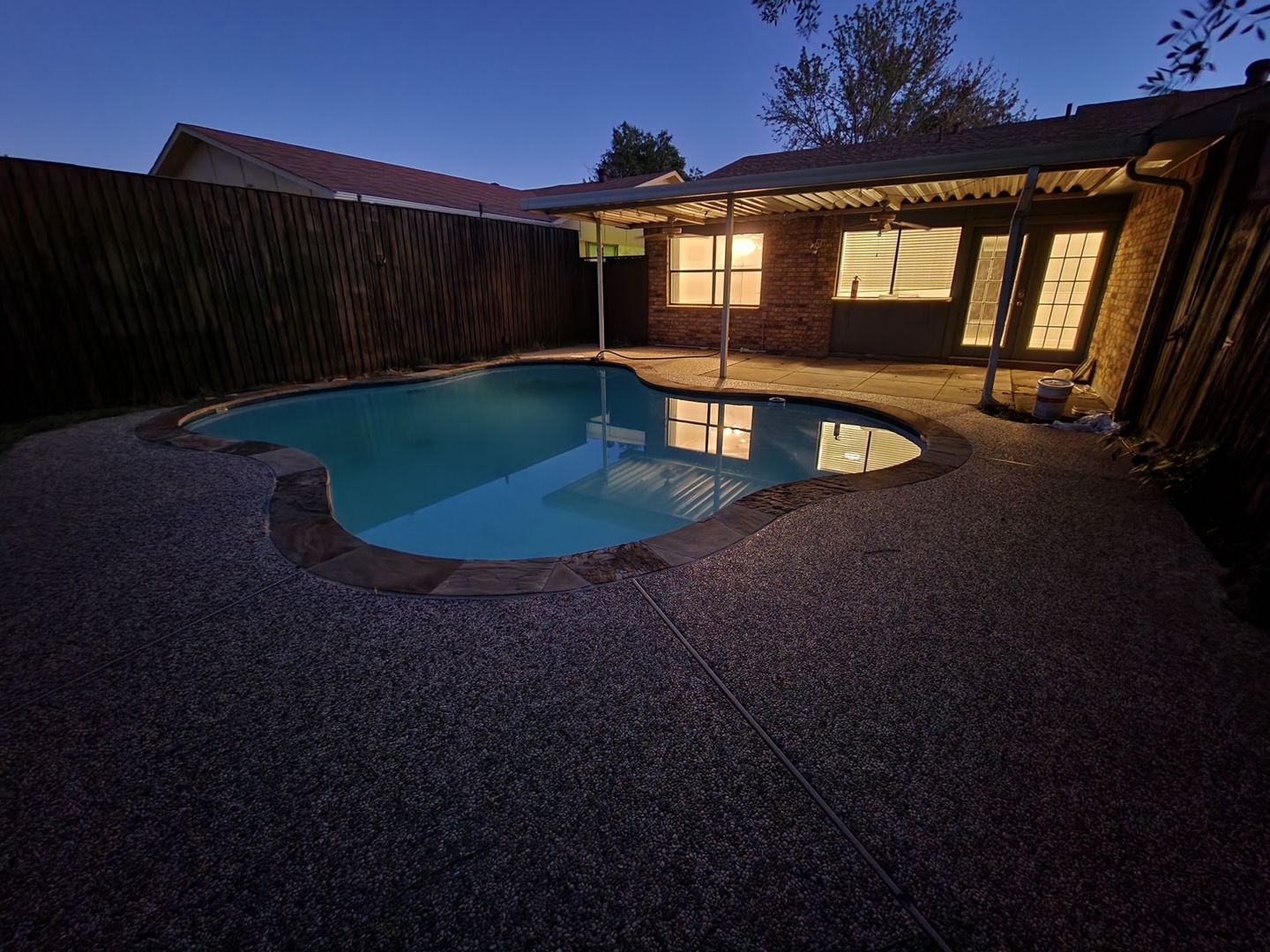 4 Bedroom Home with a POOL! Pool recently replastered, retiled and recoped with stone. Spacious 4 bedroom home has a large living room with vaulted ceilings & a wet bar. Bar leads to Guest Bedroom & a cute side patio. The bedrooms are a good size with a huge master bedroom that boasts his and hers walk in closets. The kitchen & breakfast area are bright & open with great view of the back patio & pool. The 24x10 covered back patio keeps you cool in the shade. If that's not enough, jump in the pool! Rear 2 car garage & 3 car wide driveway. A block from the water park. No Section 8 nor Housing Vouchers. Pets ok. Ready for move in Nov 1. stock photos, currently occupied.