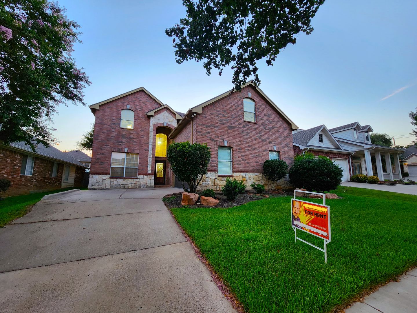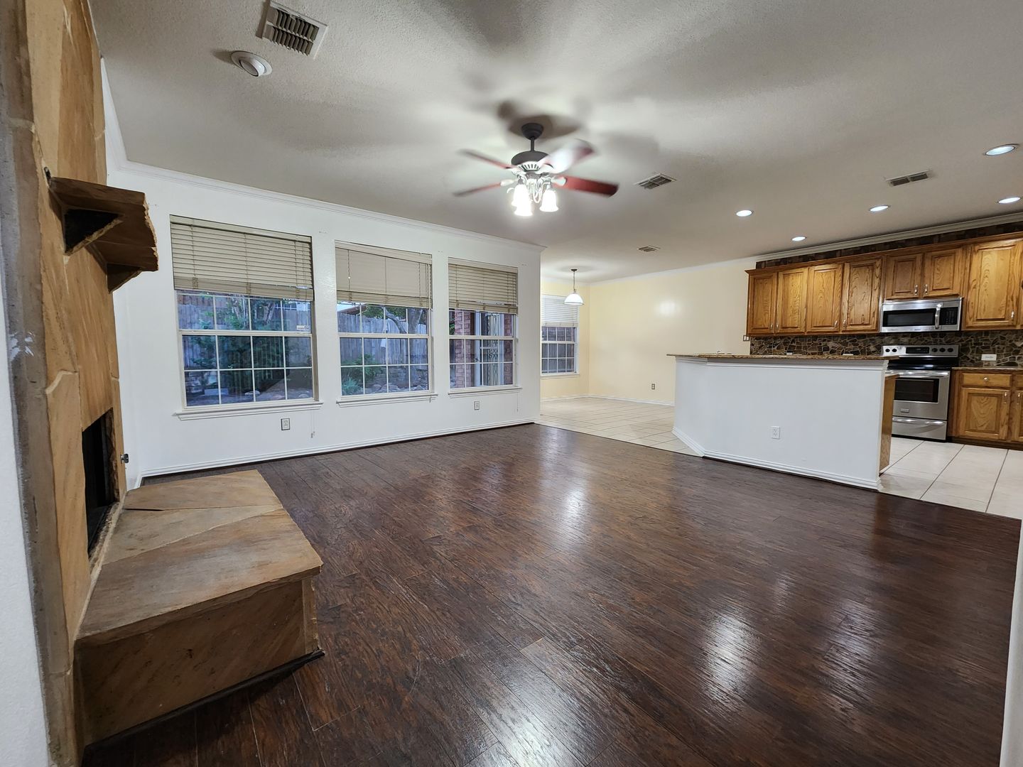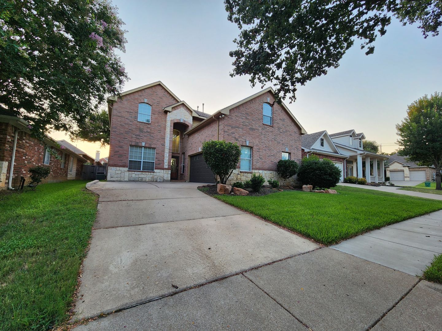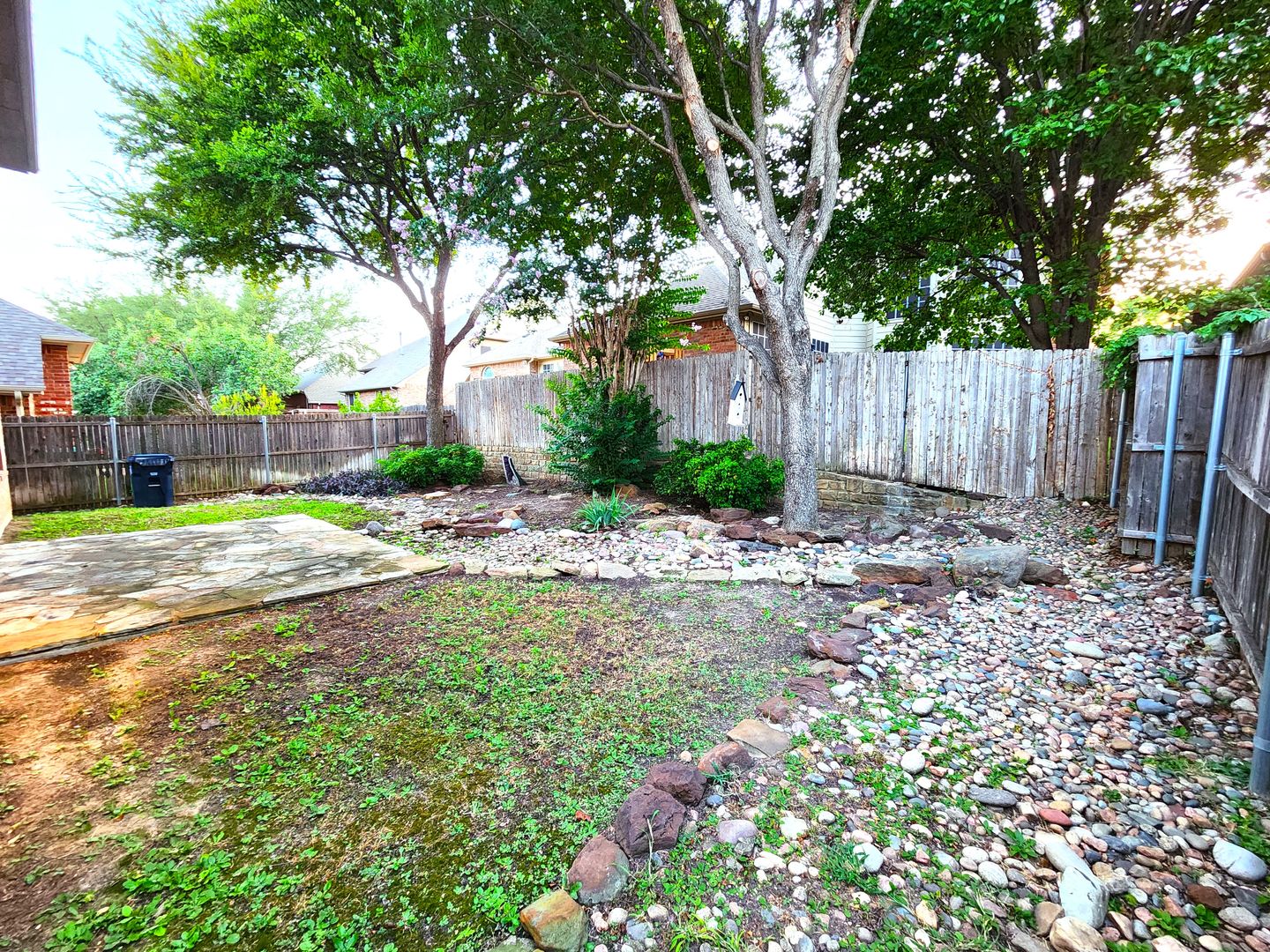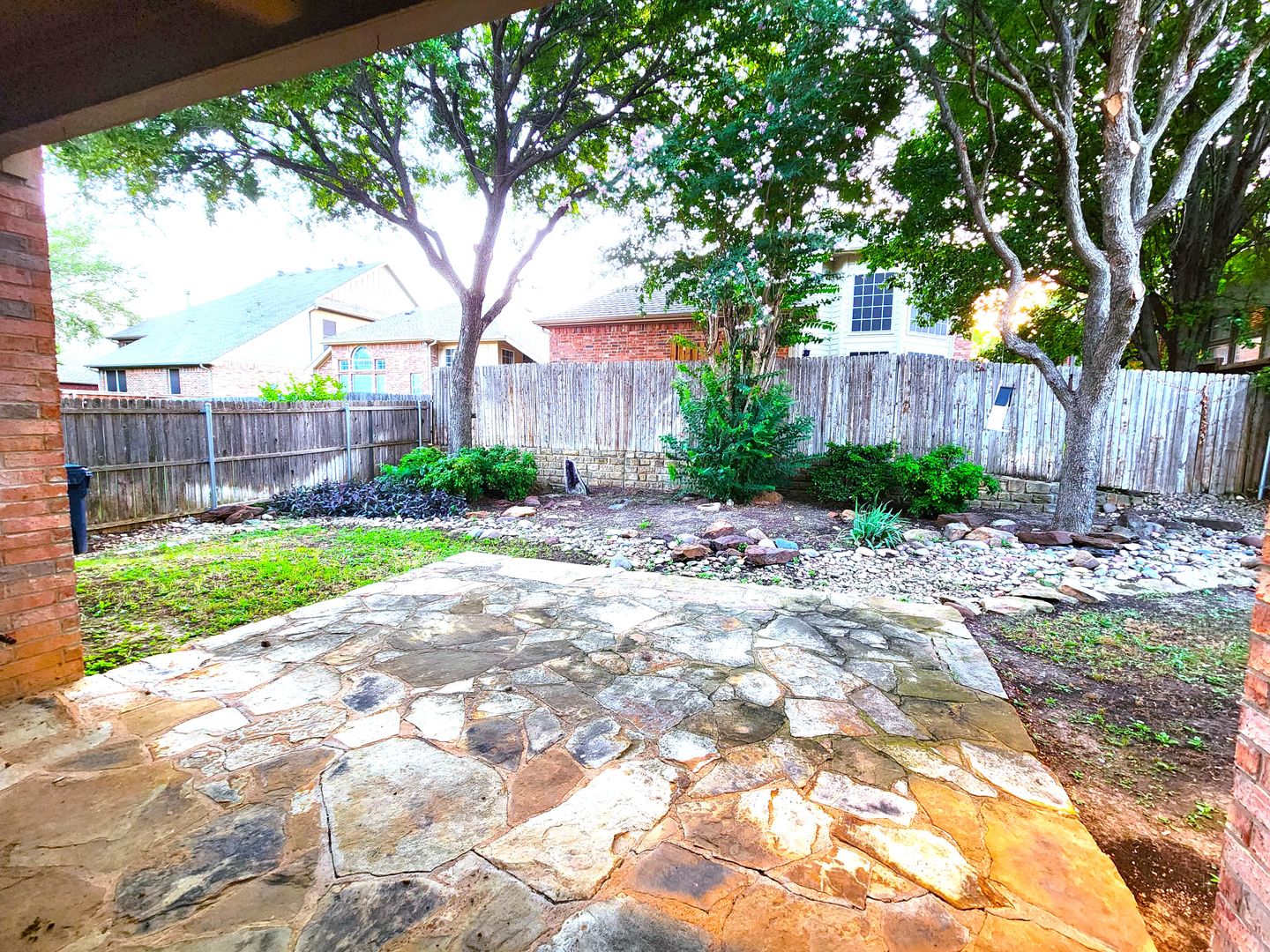 Huge 5 Bedroom home with 3 Full Baths! Enter this home and find your own space. 2 Bedrooms down, 3 Huge bedrooms up, plus an amazing Game room that would be a lego, craft, or gamer's dream. The fireplace & kitchen backsplashes are done with custom semi precious stones & fossils. Granite counters, Stainless Steel appliances, open floorplan with room for everyone. Stone patio with partial cover & lots of shade in the back. River rock decorates in a winding fashion around the trees. Finished out garage with workbench & peg wall. Upstairs has the game room, another huge living room, a small study, but what tops it all is the gigantic primary bedroom. It's like 2 rooms in one! The bathroom & closet are quite a good size as well. With close proximity to I35 on the south side of Denton, you can get anywhere you need in quick order. Easy online application. Pets ok. Students ok. Oct 1 move in.