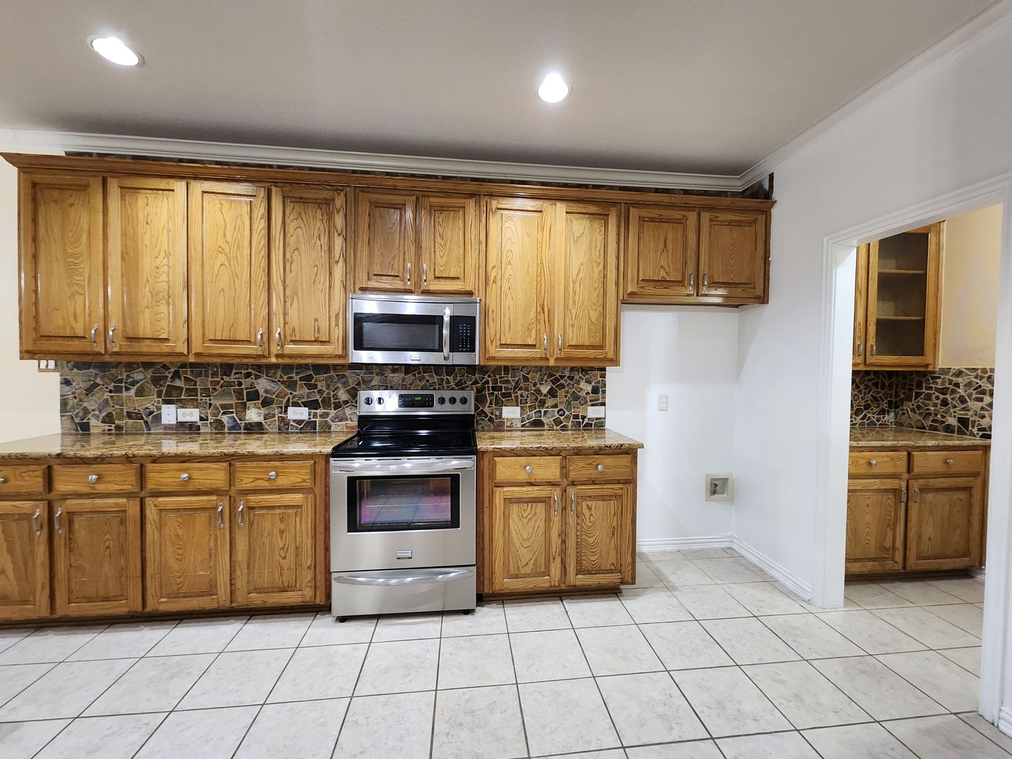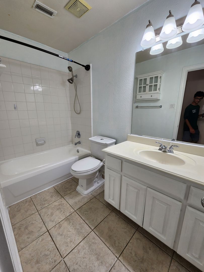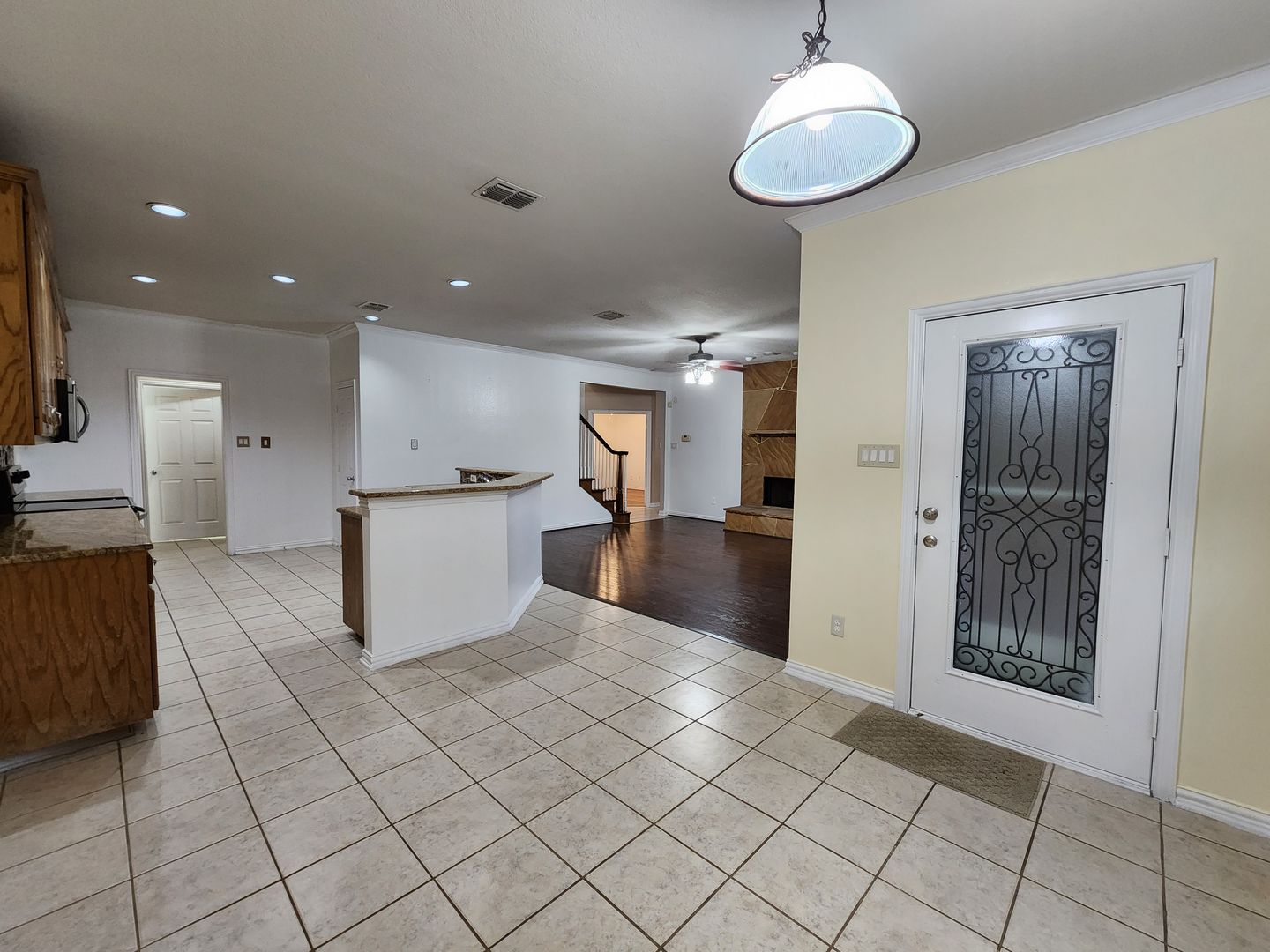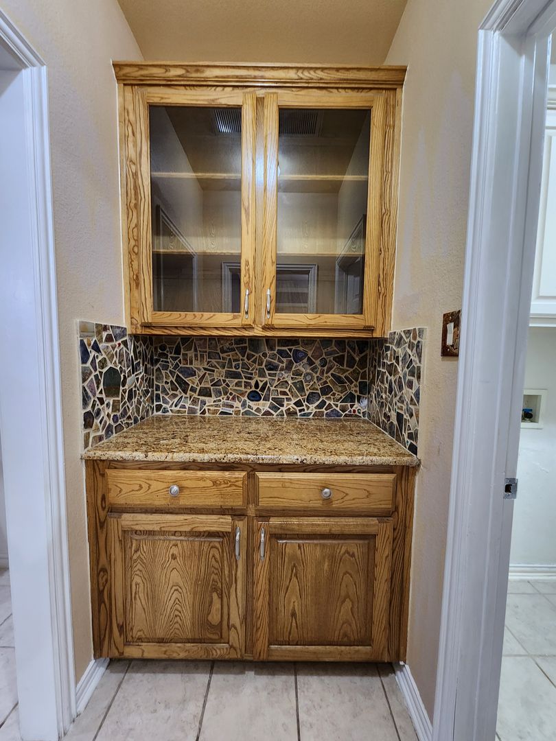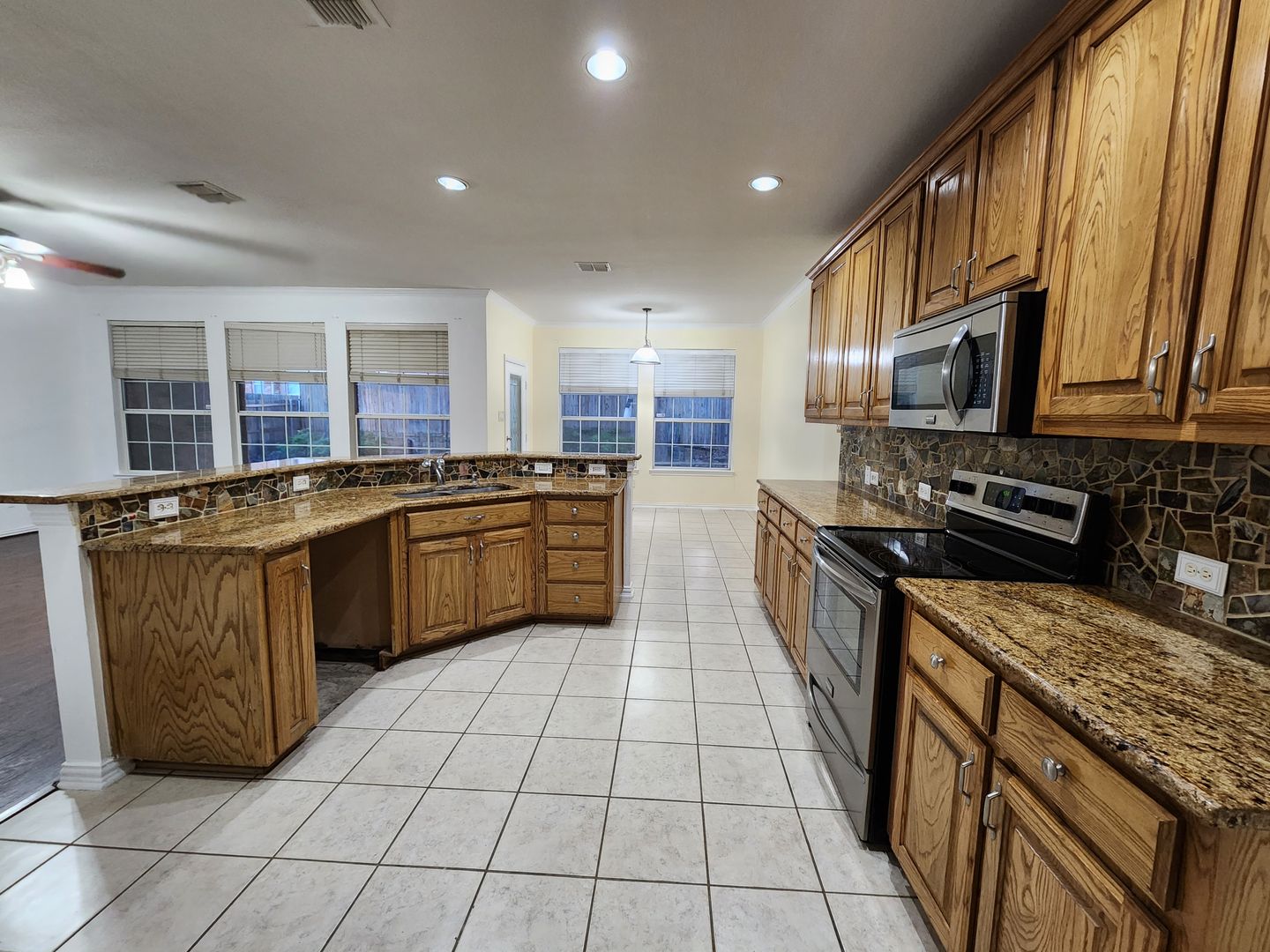 Huge 5 Bedroom home with 3 Full Baths! Enter this home and find your own space. 2 Bedrooms down, 3 Huge bedrooms up, plus an amazing Game room that would be a lego, craft, or gamer's dream. The fireplace & kitchen backsplashes are done with custom semi precious stones & fossils. Granite counters, Stainless Steel appliances, open floorplan with room for everyone. Stone patio with partial cover & lots of shade in the back. River rock decorates in a winding fashion around the trees. Finished out garage with workbench & peg wall. Upstairs has the game room, another huge living room, a small study, but what tops it all is the gigantic primary bedroom. It's like 2 rooms in one! The bathroom & closet are quite a good size as well. With close proximity to I35 on the south side of Denton, you can get anywhere you need in quick order. Easy online application. Pets ok. Students ok. Oct 1 move in.