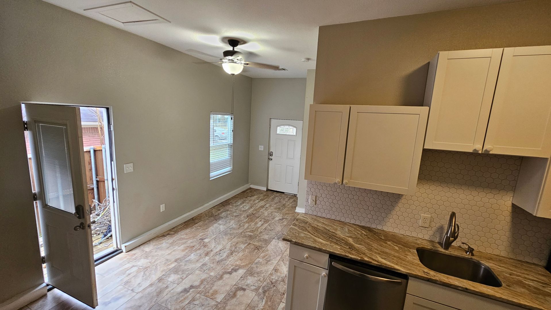 Beautiful 2 Bedroom home newly remodeled in 2020 with spacious kitchen that has Stainless Steel Gas Range, Microwave, Dishwasher, and Refrigerator. High End Granite counters and nice tile backsplash. Lots of cabinet space. New AC. Spray foam insulation in the attic. Split bedrooms afford more privacy. Nice long living room. Recent upgrades to electrical service with electrical panel all up to code. Washer and dryer included. Nice sized private back yard. This is an ADU (Accessory Dwelling Unit). Great neighborhood. Just blocks away from TWU and a short drive to UNT. Pets ok. Students ok. No Sec 8. Ready for move in April 1. Stock Photos. Occupied currently. Fast Online Application.