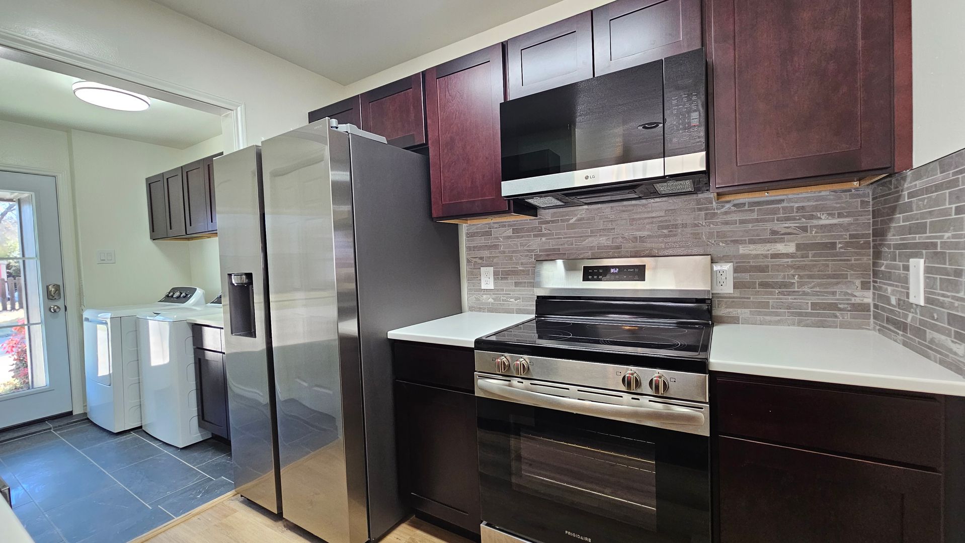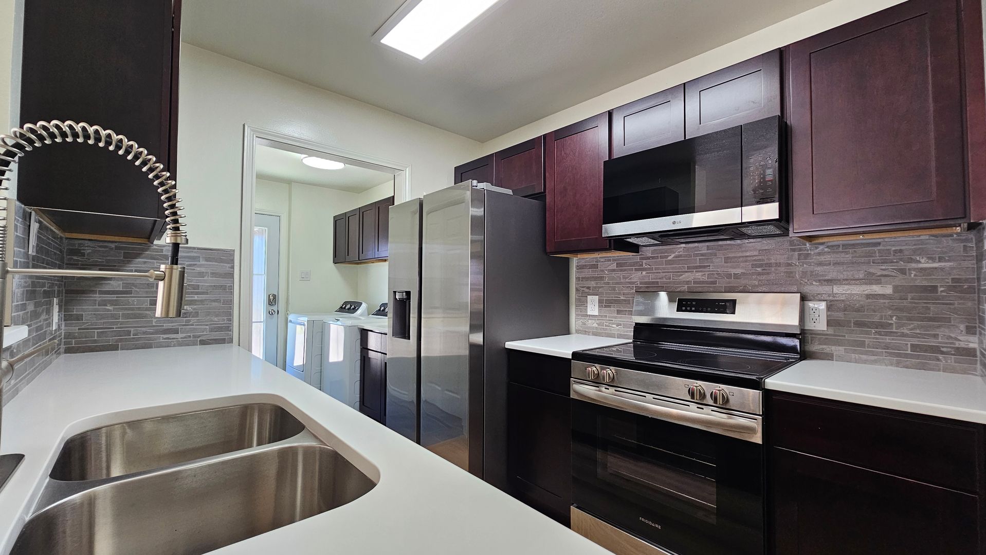 OMG! What a Beautiful Remodel! Spacious 2 Bed 2 Bath newer home 4 blocks north of UNT. Home is right next Tennis Courts and Calhoun Middle School. It is a duplex with parking in back and it's own back yard. Has all the amenities of a modern home as well as energy efficiency. There is a fenced in area in the back yard which would be good for pets. This is a great Location. We are pet friendly. Students ok. A few min away from UNT. Enter into big living room with fireplace. The primary bedroom is in the front with on-suite bathroom. The kitchen overlooks the living room and the home has a full size utility room with washer and dryer. The back bedroom is also very spacious and has views of the back.